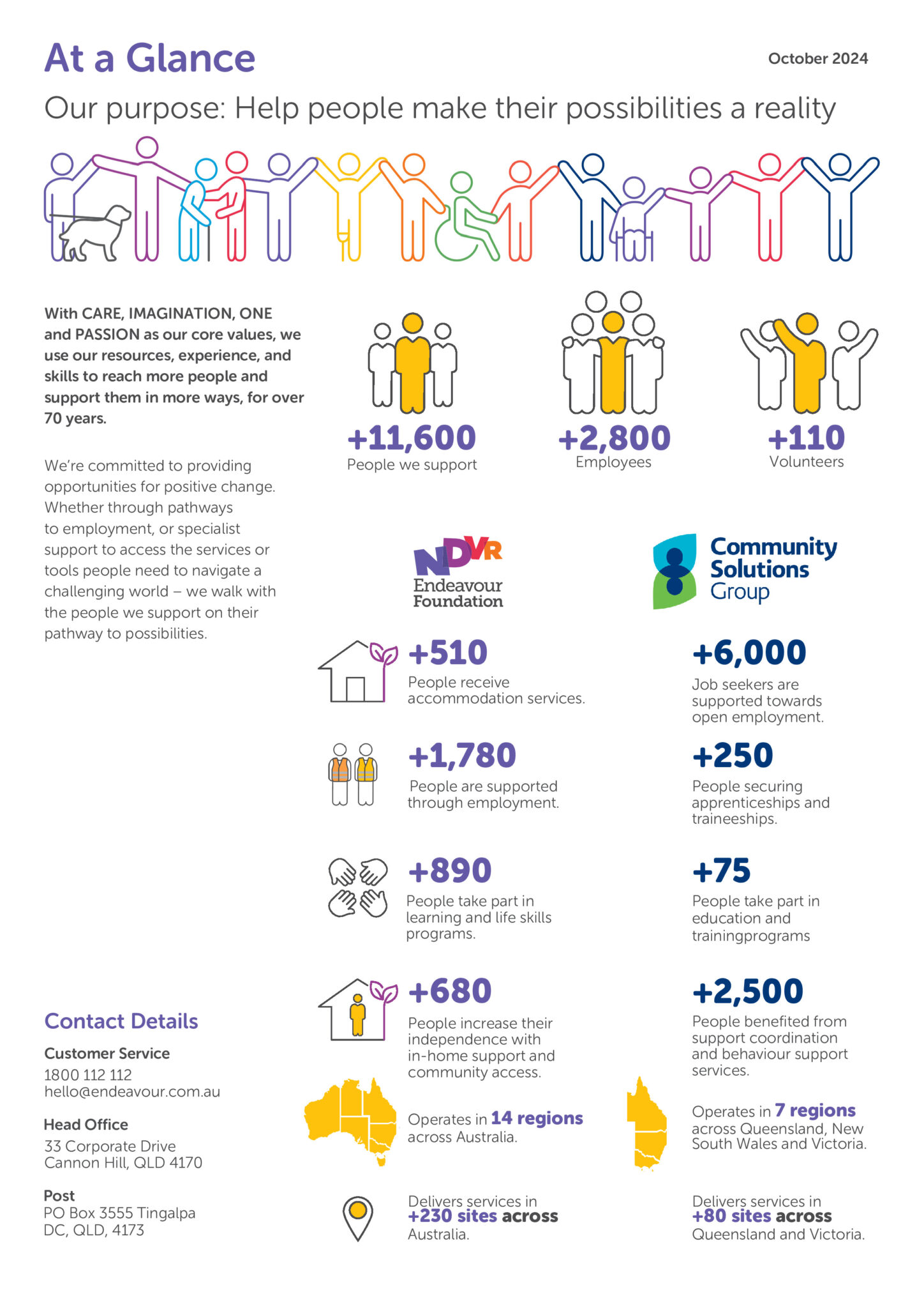 With CARE, IMAGINATION, ONE and PASSION as our core values, we use our resources, experience, and skills to reach more people and support them in more ways, for over 70 years.