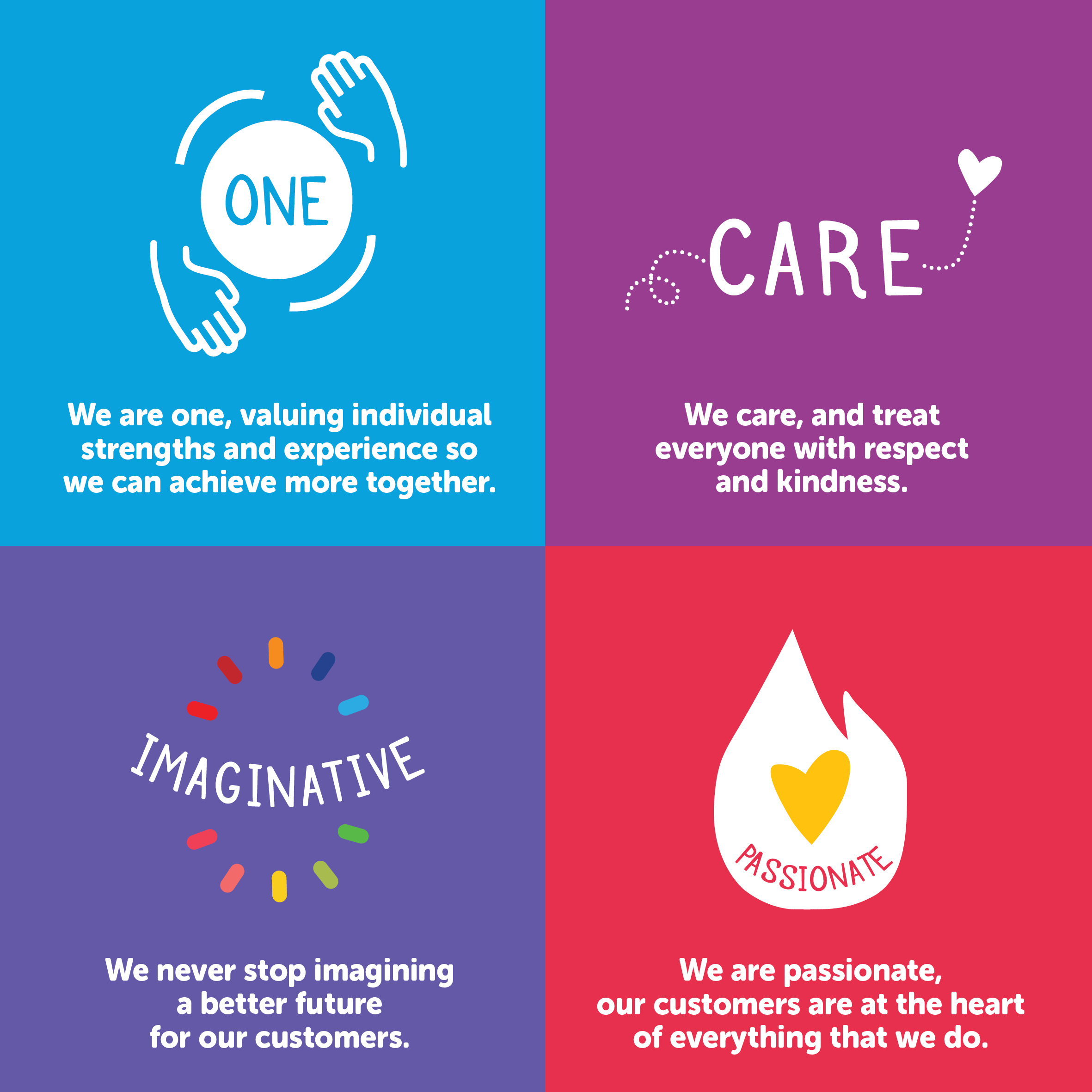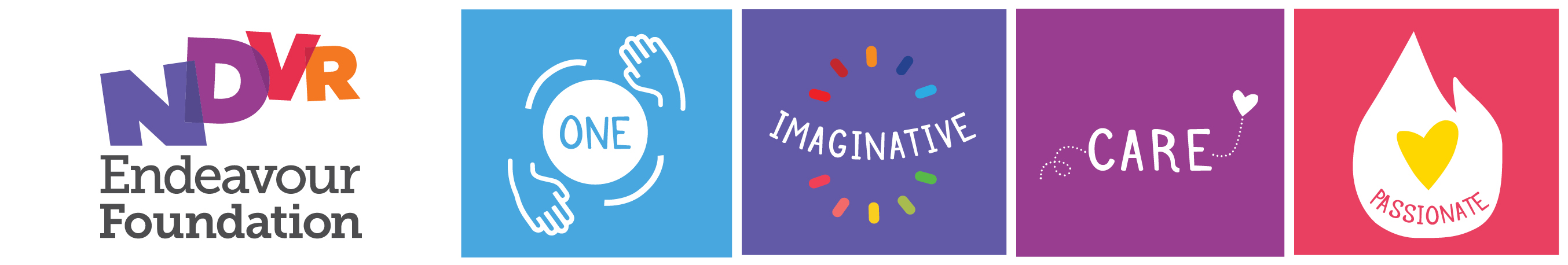 Display the Endeavour Foundation values proudly! Below are our four values tiles with descriptions included.