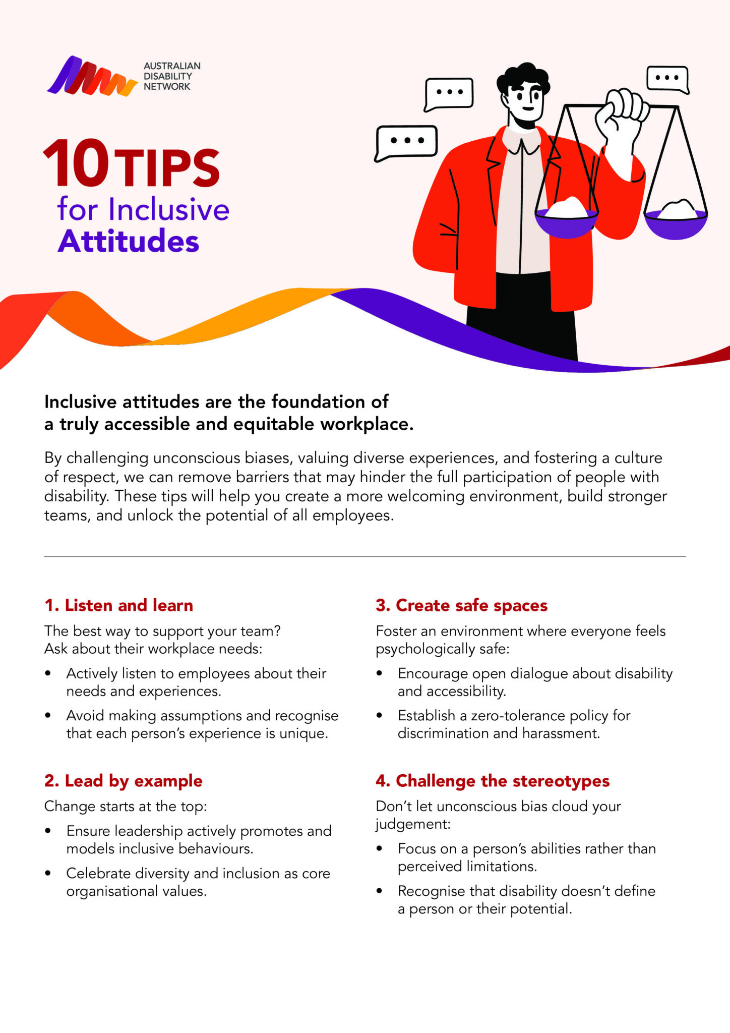 JobAccess is the national hub for workplace and employment information for people with disability, employers and service providers. Created by the Australian Government, it brings together the information and resources that can ‘drive disability employment’. The Making Workplace Adjustments Easy, Effective and Equitable – Conversation Guide is an informative guide for leaders to learn more about workplace adjustments and prepare for conversations with team members.
