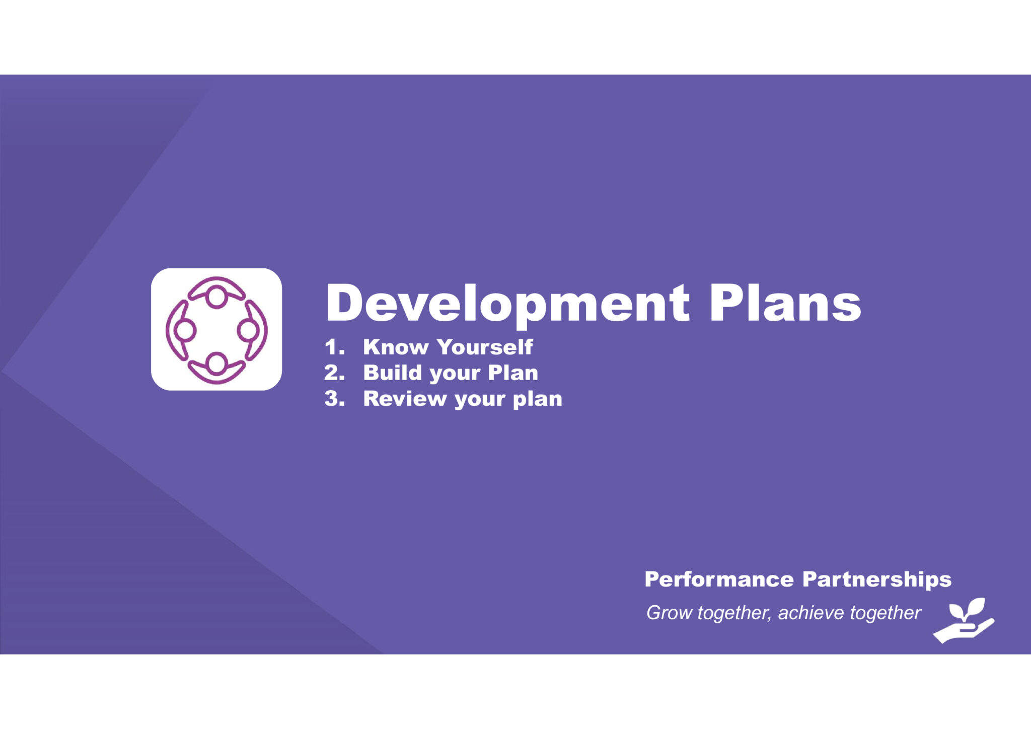 Development planning: Building an actionable plan by determining the skills and behaviours you need to achieve your career and development goals.