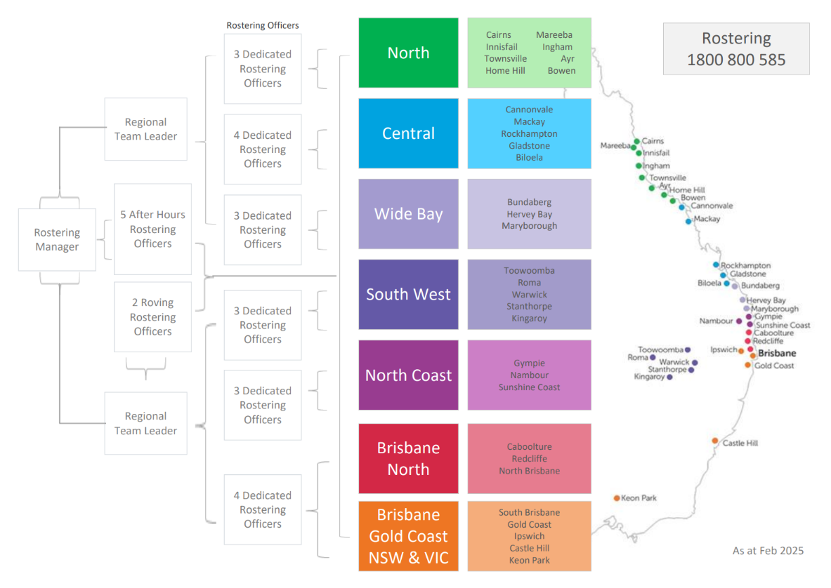 Rostering officers are organised into teams based on specific geographic areas. You will be connected to an officer familiar with your rostering requirements.