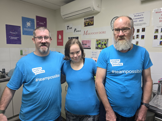 Maroochydore social enterprise employees united to recognise Do It For Dolly Day on 10 May by wearing blue.