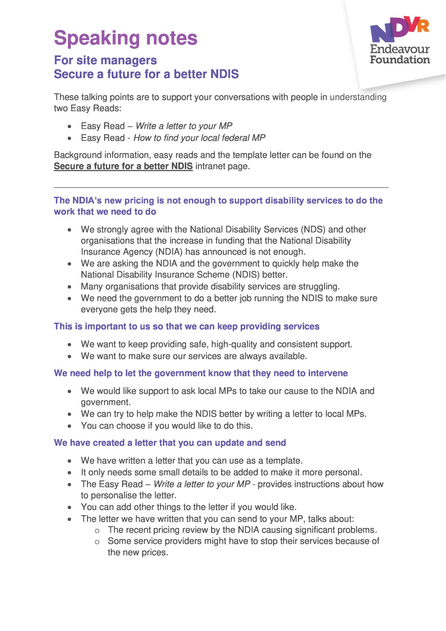 Help to secure the future for a better NDIS by writing to your local federal MP and asking them to take urgent action to keep disability services open.