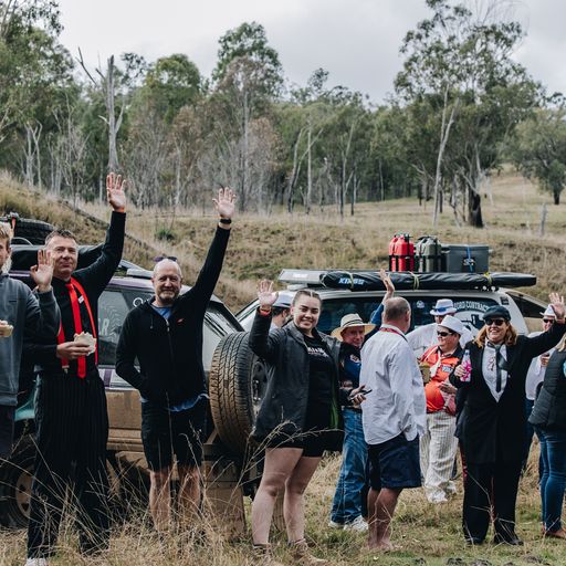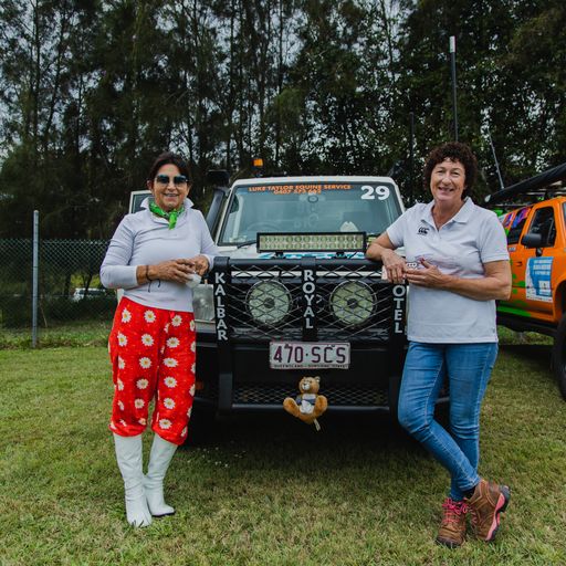 In pouring rain our rally teams, their families and more gathered at Bowden’s Own Premium Car Care on Queensland’s Sunshine Coast for the official start line of their adventure. This locally owned business is a long time commercial partner of ours and a major supporter of people with disability in the local community. From here they made their way through to Gundiah for lunch and then travelled to the small town of Mundubbera to camp and play a few classic games to help bring everyone together.