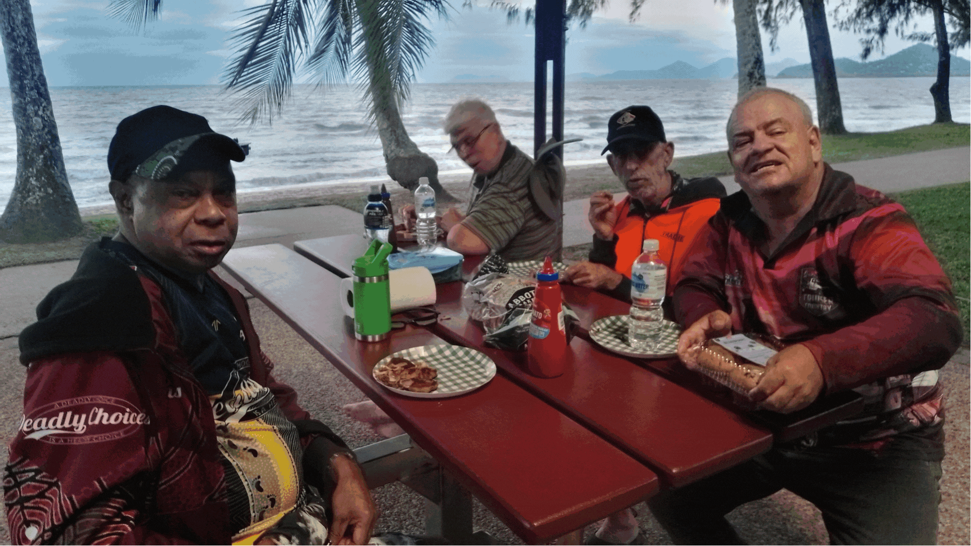 Meanwhile, Support Worker, Josh, fired up the BBQ with Paul and Gary lending a hand, while Leanne, Eddie, and Frank explored the shoreline, spotting everything from friendly dogs to motorbikes.