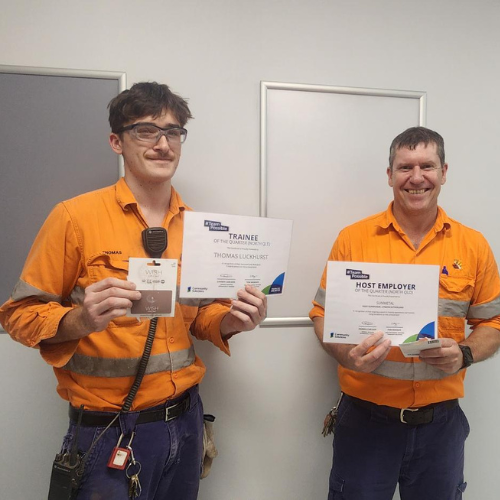 Thomas Luckhurst, trainee of the quarter (North Queensland) & Lyndon Sutherland at Sun Metals, host employer of the quarter