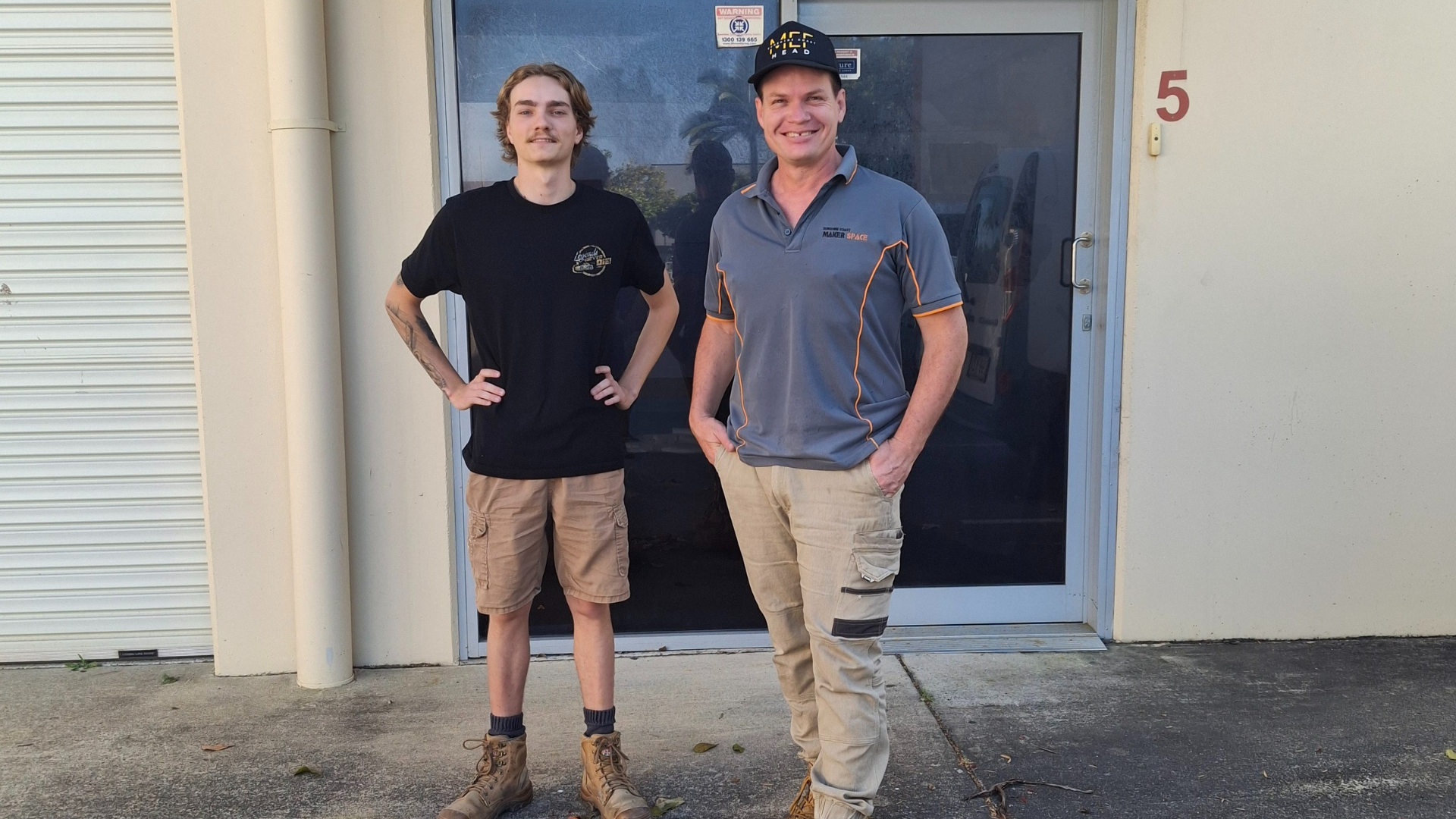 Kudos to the very first apprentice, Darcy Melinz (left), who has just begun his Certificate III in Engineering (Machining/Fitting) apprenticeship with Makerspace. Community Solutions have an ongoing partnership with the Manufacturing Excellence Forum and Dominic Vrolijks (right) from Makerspace.