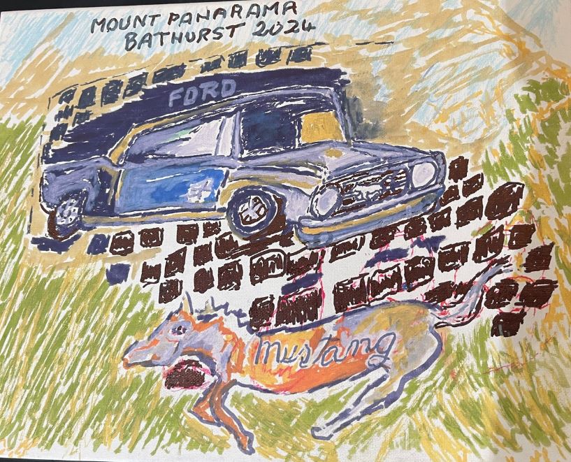 Recently the world famous, Bathurst 1000, a race that draws a crowd of super enthusiastic car lovers together, was a source of inspiration for this budding artist. Gary created an artwork for one of his housemates, showing off one of the most popular cars that are raced, the Ford Mustang.
