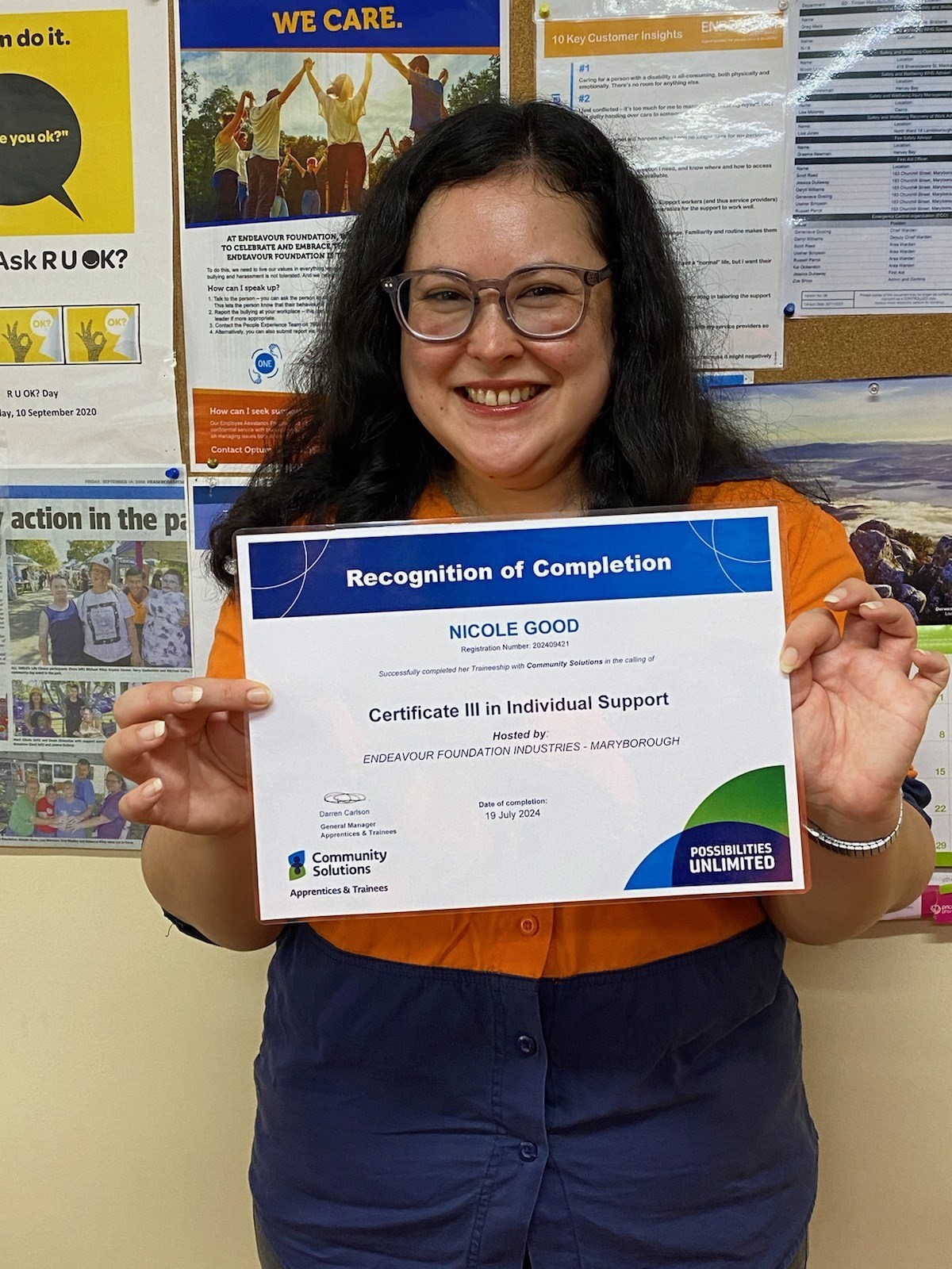 Nicole Good, a former Community Solutions trainee, is a shining example of what can be achieved when we work together. Nicole has not only completed her Certificate III in Individual Support at Maryborough social enterprise but has also secured a full-time permanent role as an Employment Coach with us!