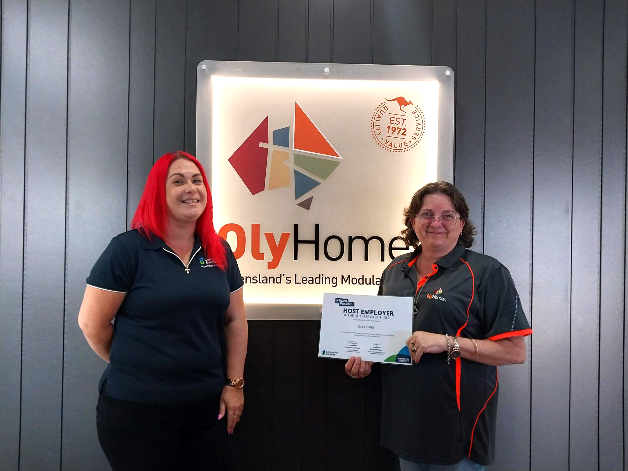 Oly Homes has been named the Host Employer of the Quarter for their commitment to providing apprentices with valuable opportunities, particularly taking on apprentices that have been handed back on numerous occasions and providing them with an ongoing placement to continue their journey.