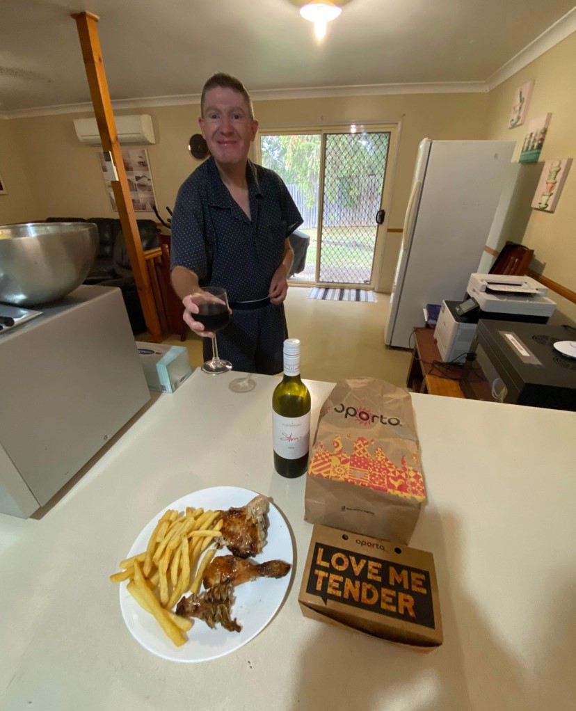 Steven’s favourite things to do at home are vacuuming the floor, mowing the lawn, doing laundry, making his own bed, cooking breakfast, and putting away groceries. In his community, he enjoys heading to his local café, pub and shopping centre to socialise. He also regularly goes on walks by himself along the nearby lake unsupported and has reconnected with his family who he regularly chats with over the phone.