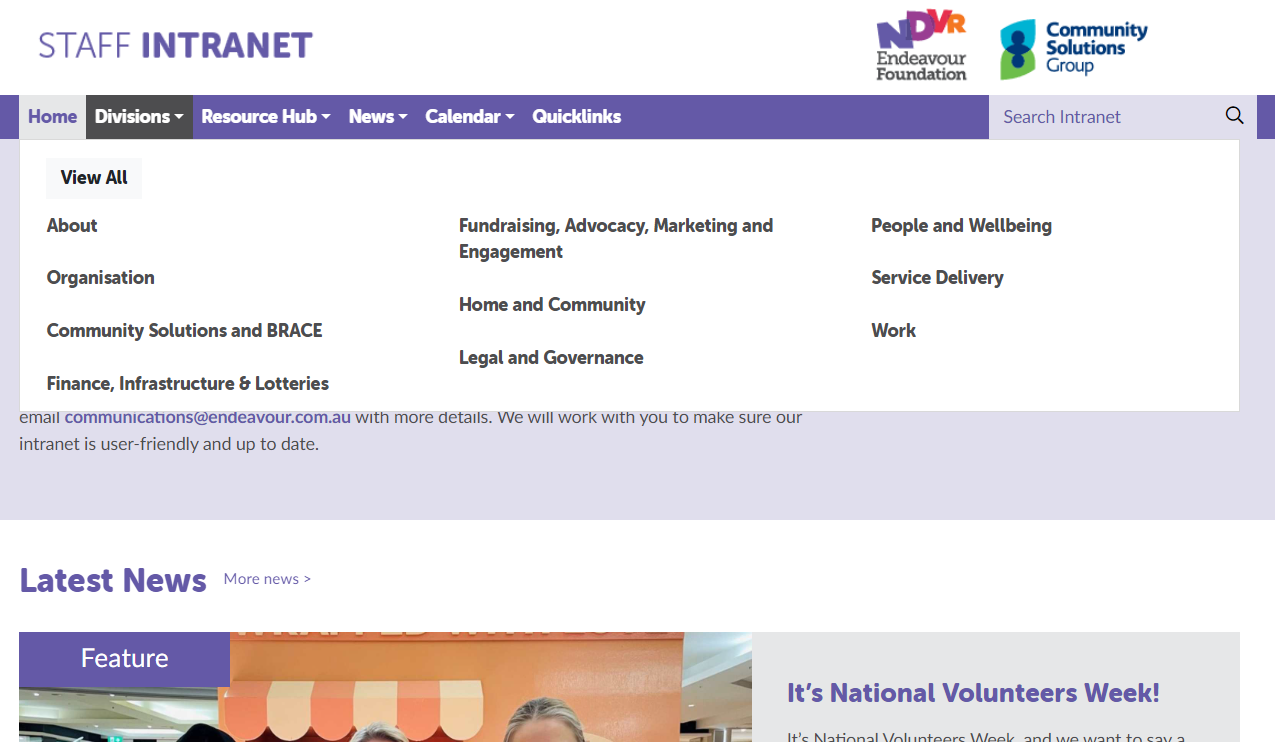 We all know that the intranet has been a bit of a spaghetti bowl of content and outdated information. The new structure makes it easier for you to find what you need, when you need it. And a big positive is that it will be more automated to be responsive to any organisation changes in structure.