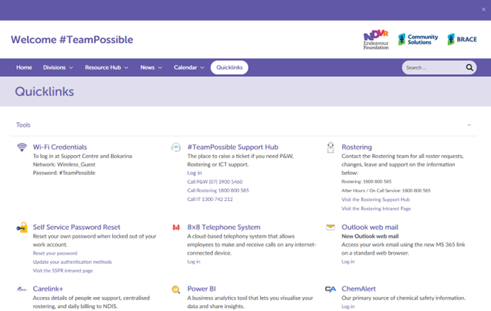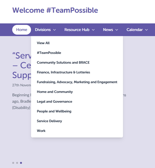 This feature will allow us to highlight projects and stories that are of significance in the organisation. It will mean that if your division has something important to share, it can be added to gain more attention.