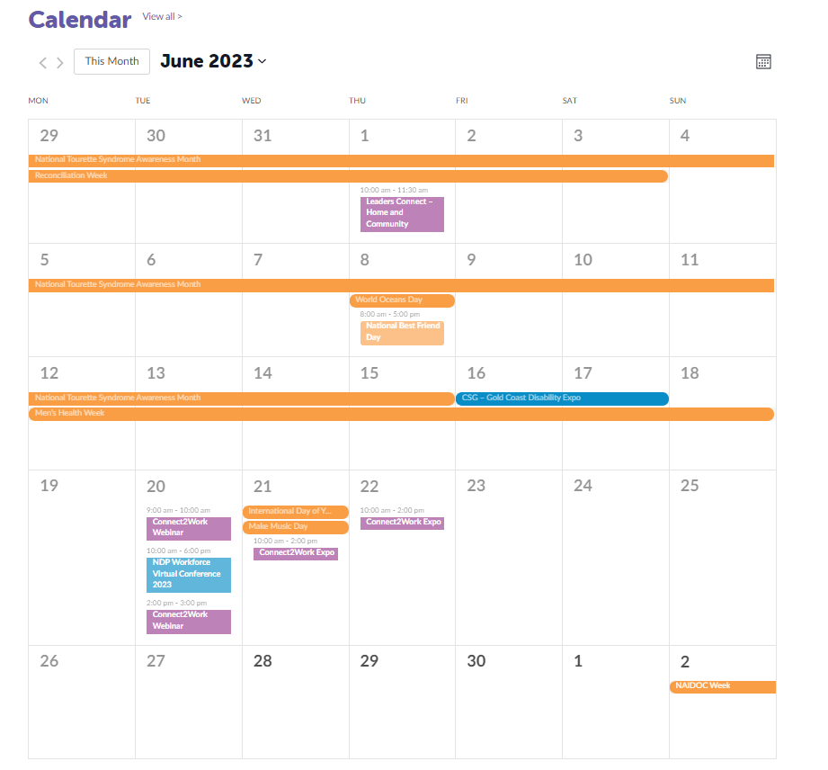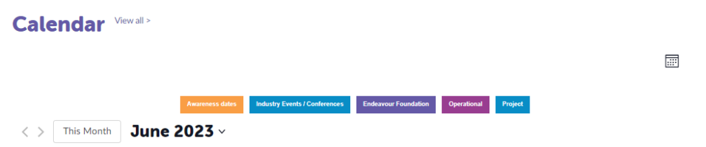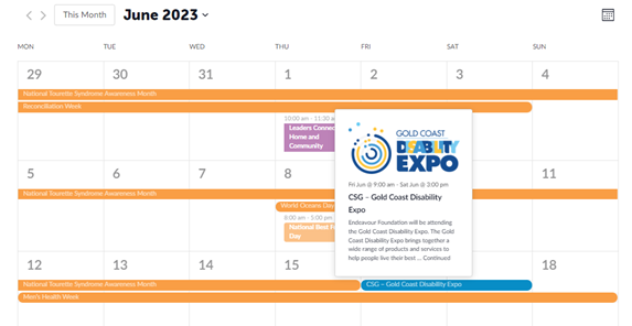- Industry events / conferences: events, such as expos or conferences, that Endeavour Foundation are attending, or have representatives speaking.