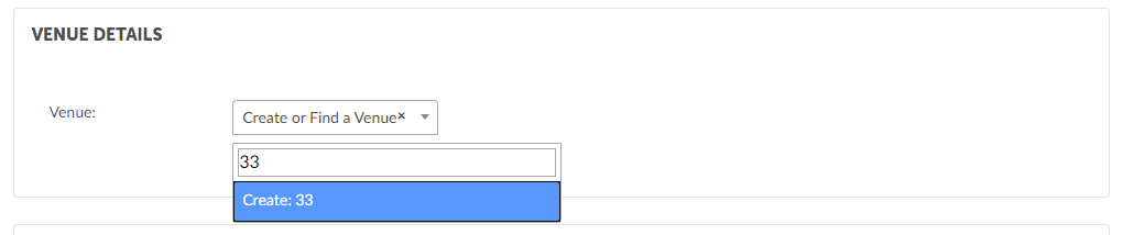 The Venue and Organiser field will give you the opportunity to add a new option if it is not already there.