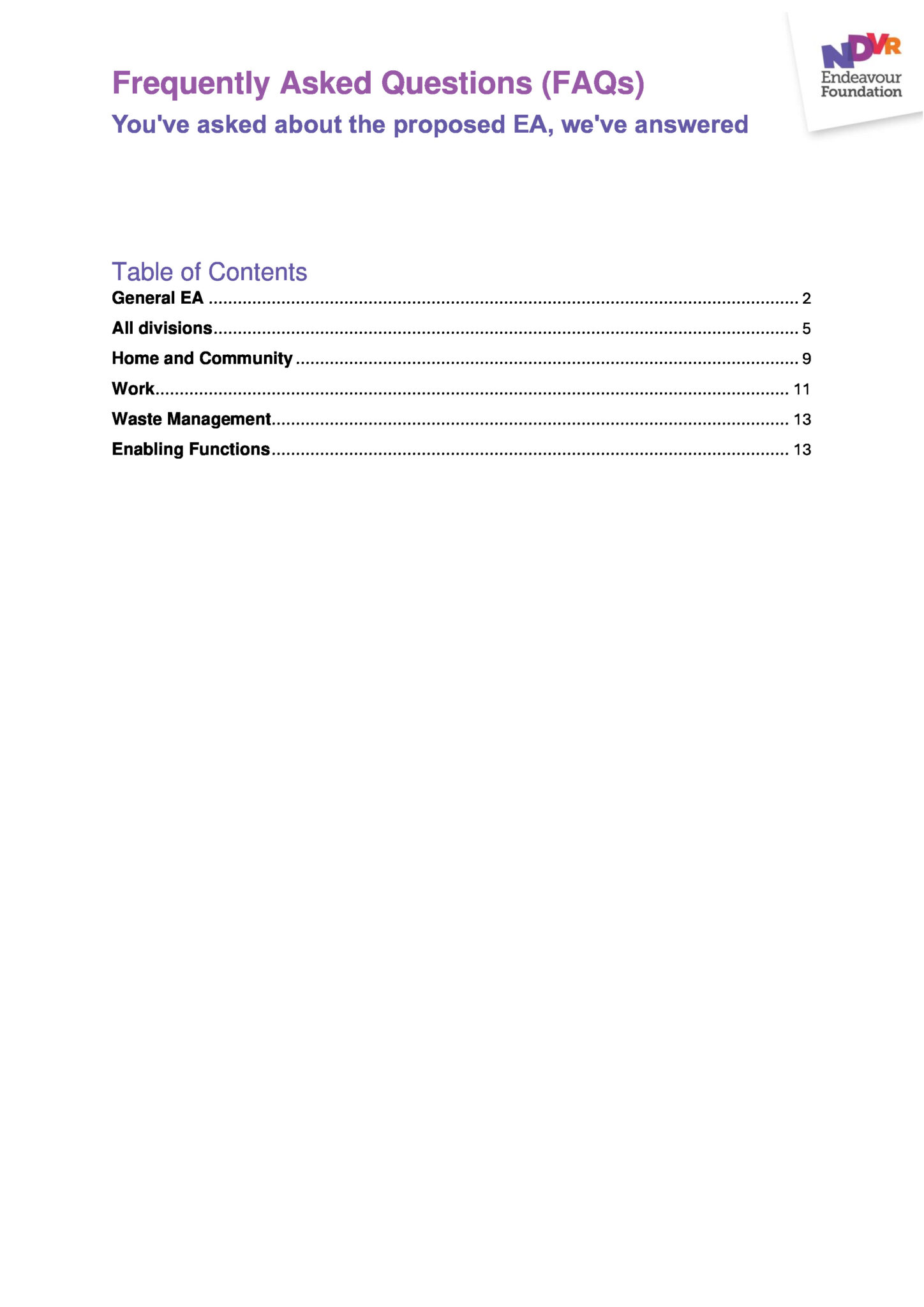 The unions have right of entry permits which enables them to follow a process and visit relevant Endeavour Foundation sites. The union notifies the People and Wellbeing team in advance of their visit so we can ensure the leader at the site is notified.
