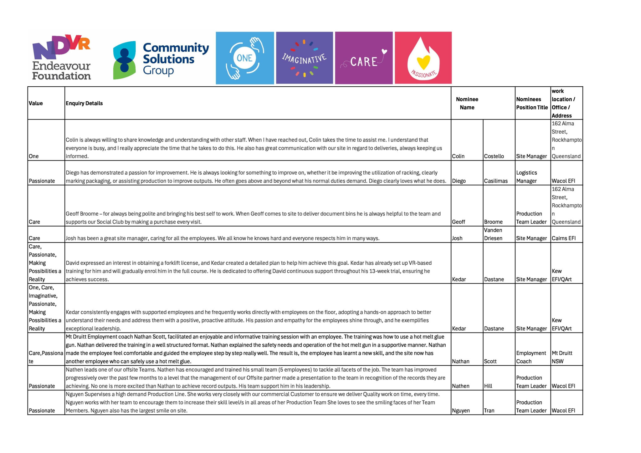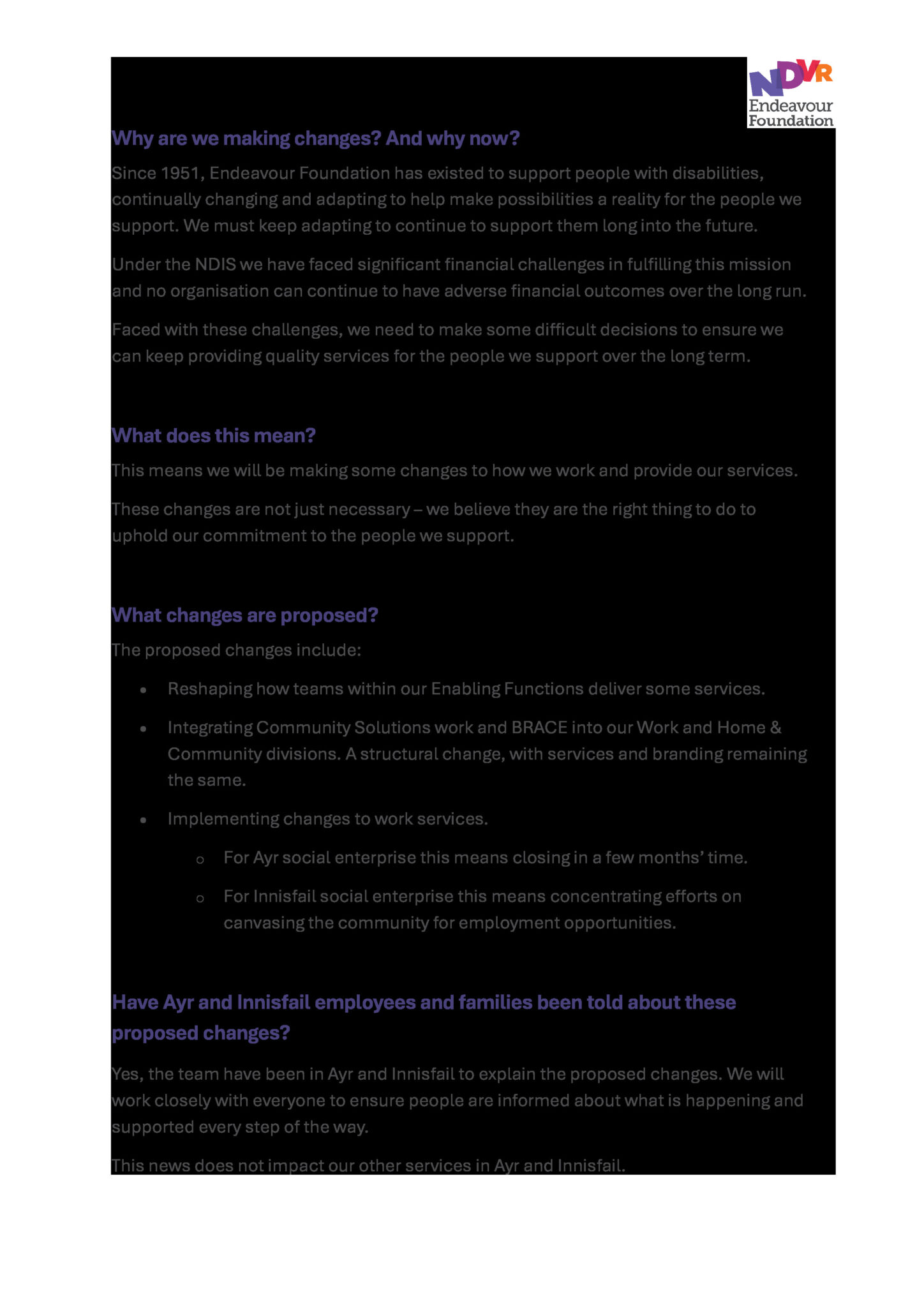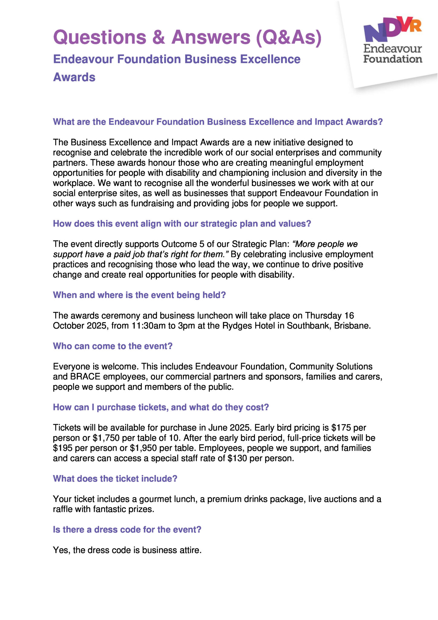 Endeavour Foundation RAP Working Group Members – Profiles Only